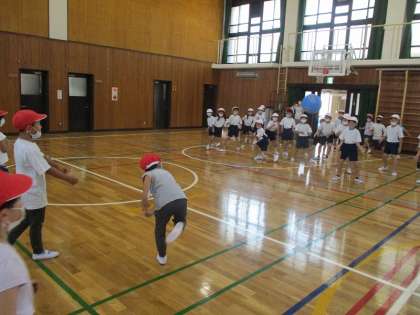 1組と2組で対戦しました。運動委員会のお兄さんやお姉さんが企画してくれた時からとっても楽しみにしていた子どもたち。当日もすごく楽しそうでした。