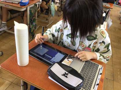 タブレットを使って漢字の復習をしました。