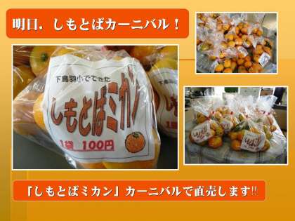 色々考えた末、袋に詰めて明日のカーニバルのバザーの1品に加えてもらうことにしました。下鳥羽小でできた「しもとばミカン」。無農薬で安全です。