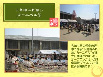 本日,好天に恵まれた中で「下鳥羽ふれあいカーニバル」が行われました。地域諸団体の皆さん,PTAの皆さんを初めとする,大勢のみなさんのご準備・ご協力によって,すばらしい半日の集いとなりました。本当に有難うございました。またご苦労様でした。子どもたちもいい思い出のたくさん出来た半日でした。