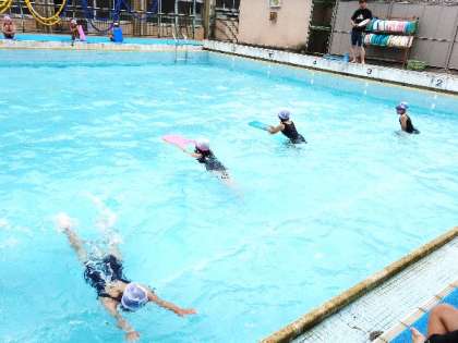 だるま浮きやふし浮き,けのびなど基本的な動きを確認しました。