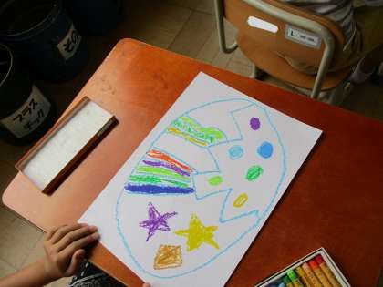 図画工作科の学習で「ふしぎなたまご」を描きました。