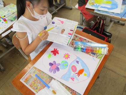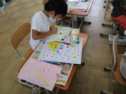 どんな色や模様にするかを一生懸命考え,とても楽しそうに描き進めていました。
