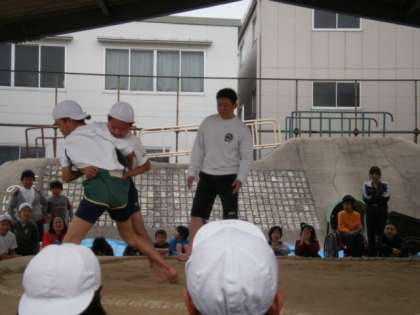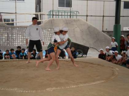 土俵際でねばり,最後に勝つことができた子や,自分より大きい相手にも諦めずに戦うことで勝つことができた子もいました。
