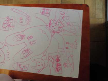 大きく絵をかいて,上手にクレヨンパスをつかっています。