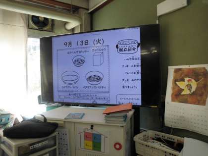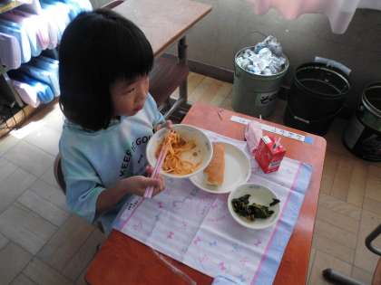 給食の準備もしっかりとできていて,おいしく給食を食べていました。