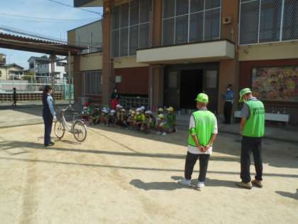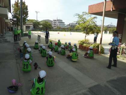 伏見警察署員さん、伏見地域交通安全活動推進委員協議会の皆様が指導にあたってくださいました。