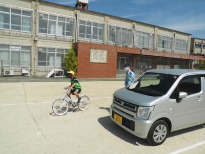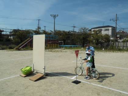 自転車の「発進」「一時停止」「左右前後の確認」「降車」「遅乗り練習」などについて様々な技術を教えていただきました。