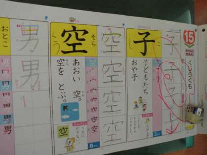 丁寧に「空」という漢字を学習していました。