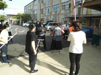 本日、児童が下校後に不審者対応研修会を行いました。最初の声のかけ方、警察への通報の文言やタイミング、児童の避難の仕方、さすまたの使い方等を学びました。