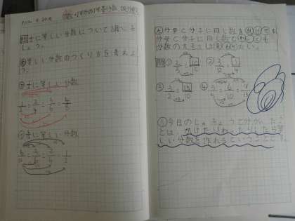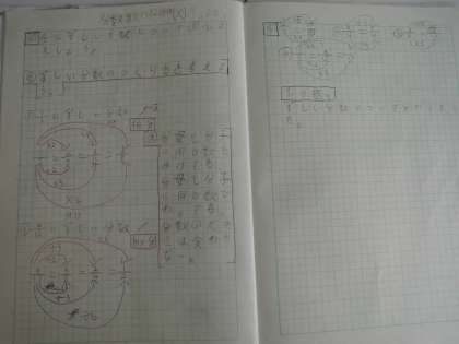 問題,めあて,考えたこと,大事,ふりかえりと,流れに沿ってノートを書くことを目標にしています。