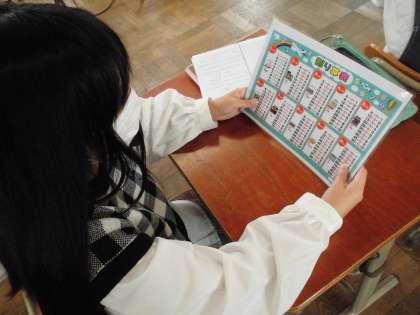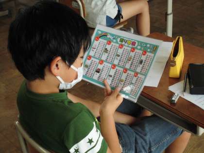 わり算表やかけ算表を見ながら,しっかりと復習をしています。