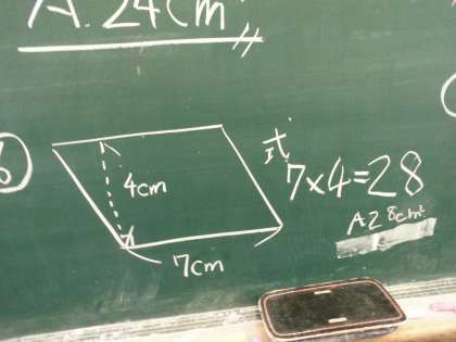 今日は平行四辺形の面積を求めました。