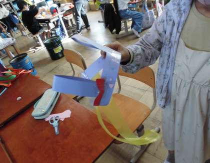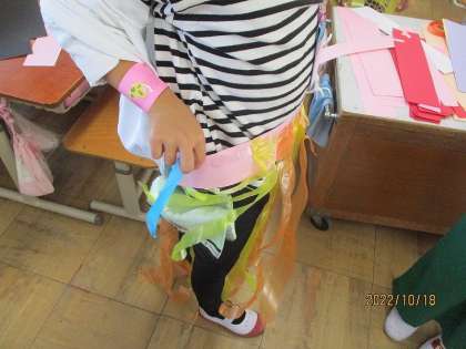 作ったわっかに、いろいろな飾りをつけて変身しました。