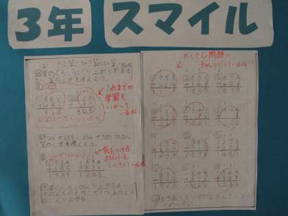 下鳥羽小学校では,学習で頑張って書いているノートを掲示しています。