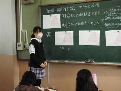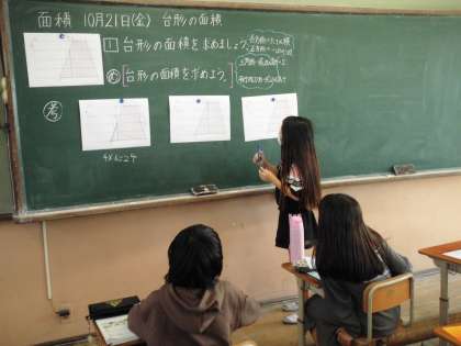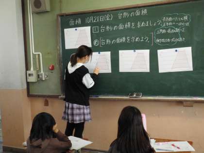 今日は台形の面積の求め方をみんなで学習しました。