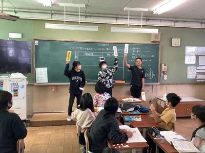 織田信長か豊臣秀吉か・・・。どちらが天下統一に向けて大きな役割を果たしたか、みんなでディスカッションしました。