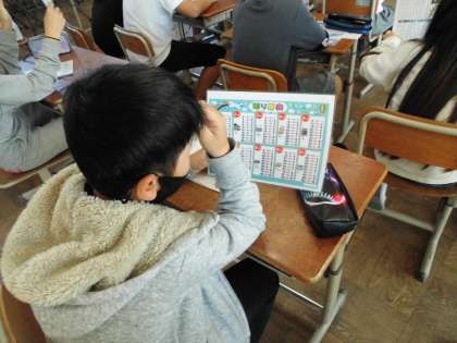 授業の始まりには,わり算,かけ算表の暗唱をしっかりと練習をしています。