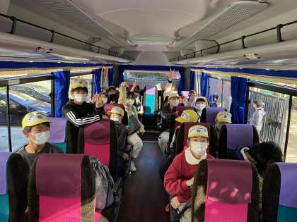バスに乗って出発しました。淡路SAで初めの休憩をする予定です。