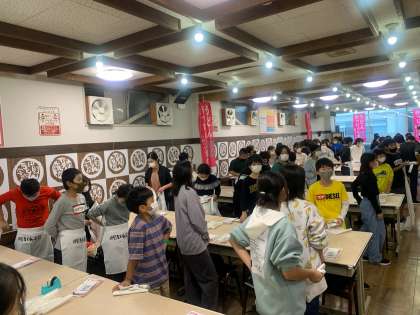 中野うどん学校に着きました。今からうどん打ち体験です。