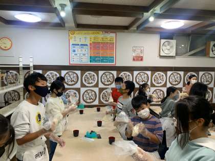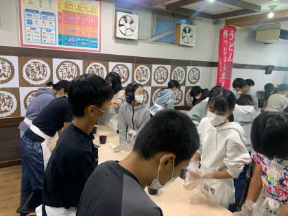 みんな一生懸命にうどん作り頑張っています。