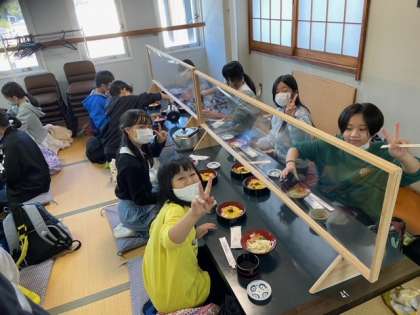修学旅行最後のお昼ごはんです。香川といえば、うどん。美味しく頂きます。