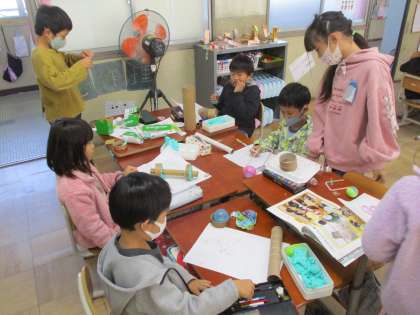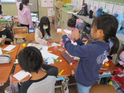 「ここがうまくいかへんなぁ。」「もっと輪ゴムをつけてみよう。」などそれぞれが試行錯誤しながらがんばっています。