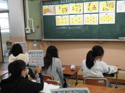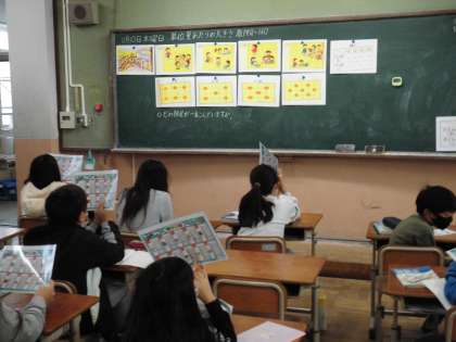 たたみ1枚あたりの子どもの人数,子ども1人あたりのたたみの枚数など,わり算を使って学習しました。