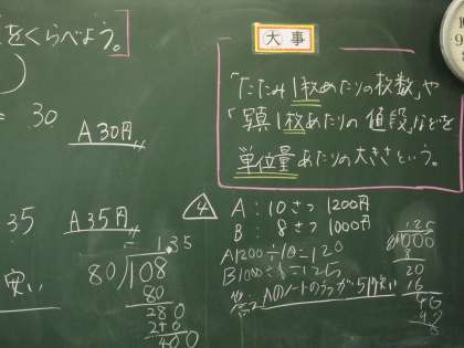 単位量あたりの大きさの学習では,○○あたりという文章が出てきます。