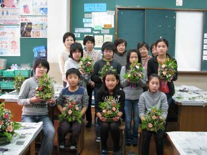 12月9日(金)園芸委員会では,いつも花壇づくりでお世話になっているボランティアの皆さんから,「バラのトピアリー」を教えていただきました。バラの花を主にしていろいろな葉や木の実などをアレンジして作ります。完成した作品は,クリスマス飾りにぴったり!素敵なトピアリーは,各教室に飾りました。教室がパッと明るくなりました。皆様ご指導ありがとうございました。