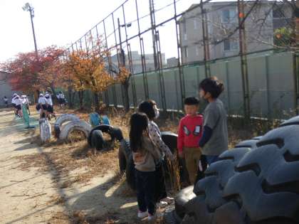 いろいろな色の葉っぱを見つけたり、グループで協力して木の太さを測ったりしました。
