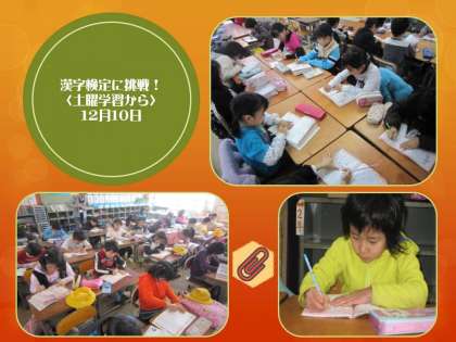 12月10日,本日の土曜学習は,『漢字検定に挑戦!」の時間から始まりました。テキストを開いて,早速,漢字の学習を始める子どもたち。「朝起きて,少し時間があったので,このテキストで練習したよ。」と話す子どもがいました。そうです。大切なことは,この取組をきっかけにして,家庭で自分から学習できる子どもを育てたいのです。そのことが最も大切ですよ。