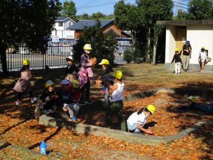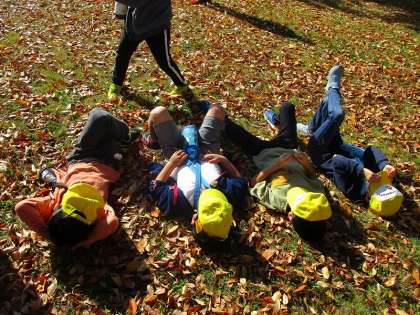 休憩場所の公園には落ち葉がたくさんあり、落ち葉の上で寝転んでみたり、落ち葉をかけあったりして秋らしい時間を過ごしました。