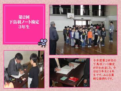 今日は,今年度第2回目の『下鳥羽ノート検定』が行われました。中学年の日です。3年と4年,それぞれが1時限(45分)ずつを使って検定が行われるのです。
