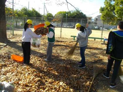 今週は、晴天の下、6年2組が柳長公園そうじを行いました。