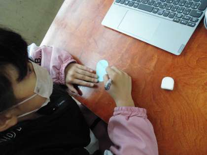 たくさん集めた「ふわふわ言葉」から、言われて一番うれしかったことをカードに書きました。