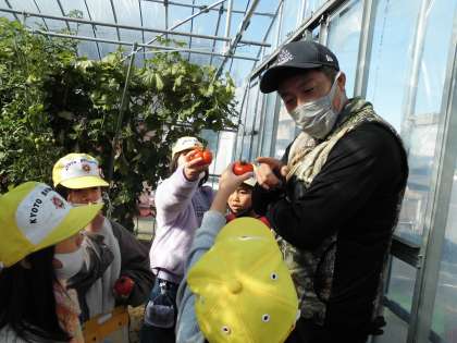生活科でミニトマトや小松菜を育てた2年生。