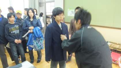 ブレザーにそでを通す姿から,大きく育ったなと感じるひとときでした。