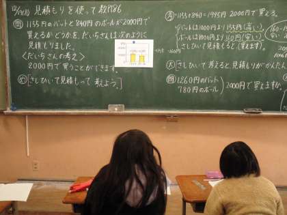 算数では復習問題や見積もりをつかっての楽手をしています。