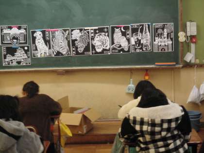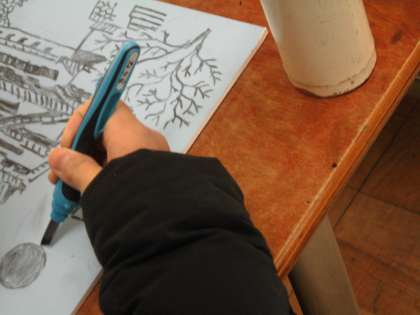線彫りを中心に,しっかりと線を彫って作品作りに取り組んでいます。