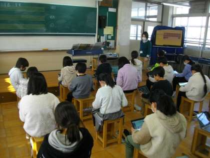 音楽科で打楽器を使って楽しみました。各グループでGIGA端末を活用して、どんなリズムと順番で演奏するのか考えていました。
