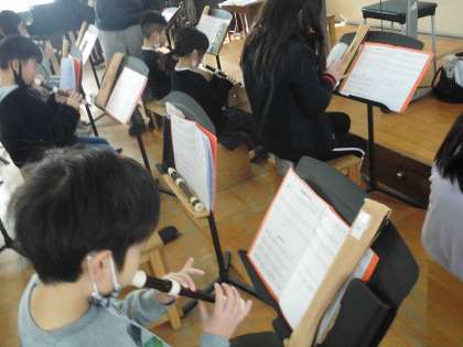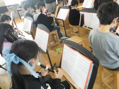 3年生の音楽の学習です。リコーダーの曲を何度も練習をしました。