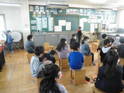 大太鼓や小太鼓をつかって,リズム打ちをしました。