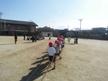 中間休みに運動委員会のイベントで「つなひき大会」がありました。