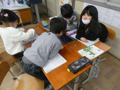 グループでタブレットを使ってひらがなを並びかえ、色々な言葉をつくりました。