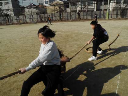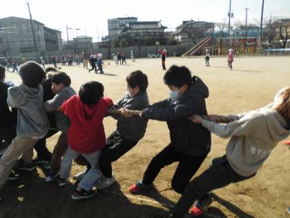 中間休みに運動委員会の子どもたちが企画してくれた「綱引き大会」がありました。