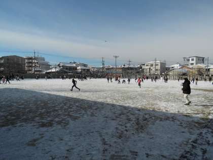 子どもたちは雪が積もっていて,大喜びです。
