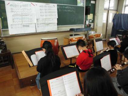 太鼓に挑戦しました。太鼓に挑戦では,3人1組で太鼓の役割を決めて練習をしました。