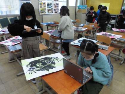 素敵な作品を見つけて、ギガ端末で写真を撮り、上手だったところを書き込んでいきました。
