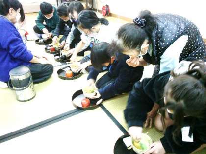 地域の女性会の方たちに来ていただき、茶道体験をしました。